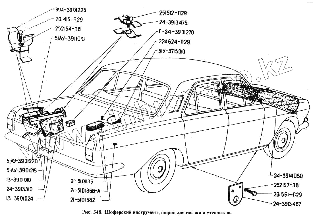 Каталог запасных частей к технике: ГАЗ-24. Шоферский инструмент, шприц для смазки и утеплитель