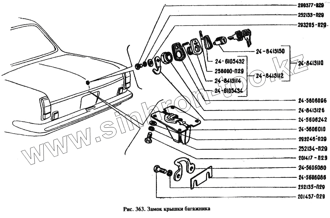 Каталог запасных частей к технике: ГАЗ-24. Замок крышки багажника