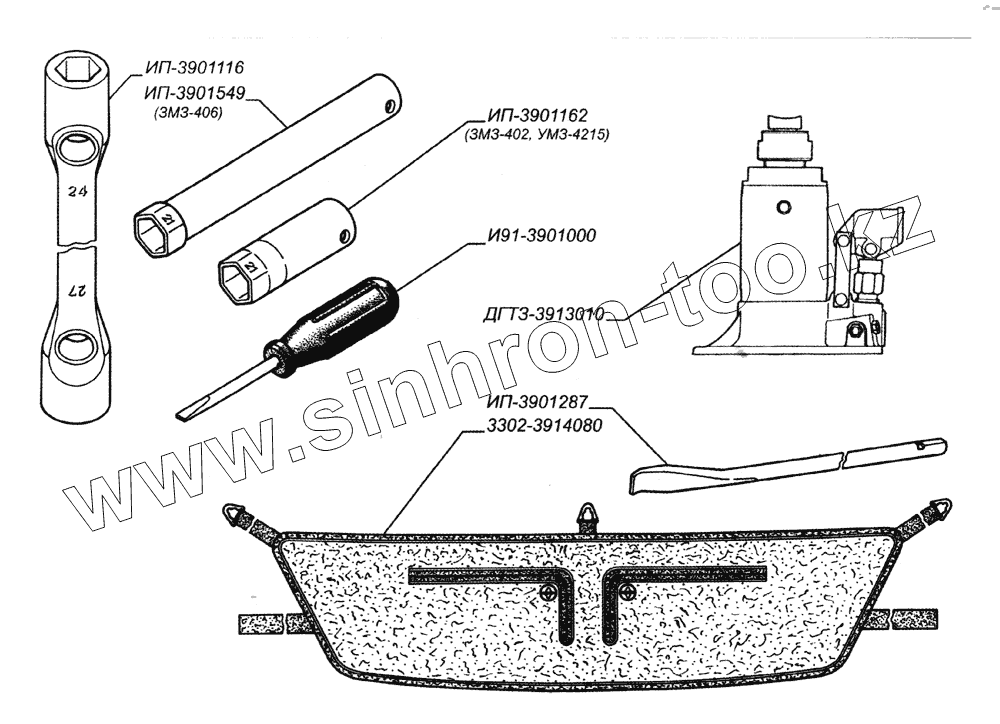 Каталог запасных частей к технике: ГАЗ-2705 (дв. ЗМЗ-402). Инструмент, домкрат и принадлежности