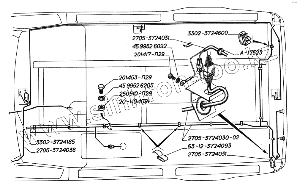 Каталог запасных частей к технике: ГАЗ-2705 (дв. ЗМЗ-406). Электропровода (грузовой отсек)