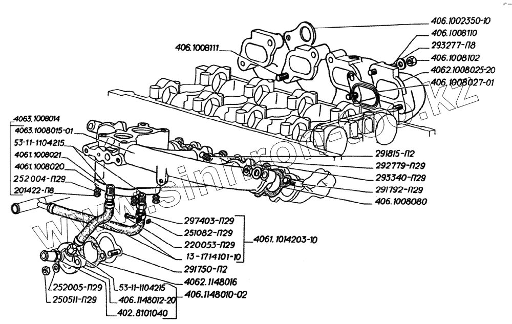 Каталог запасных частей к технике: ГАЗ-2705 (дв. ЗМЗ-406). Газопровод двигателей ЗМЗ-406