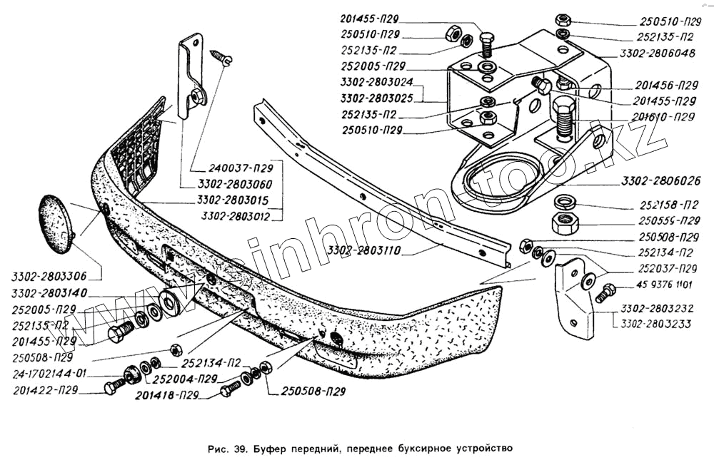 Каталог запасных частей к технике: ГАЗ-2705 (ГАЗель). Буфер передний, переднее буксирное устройство