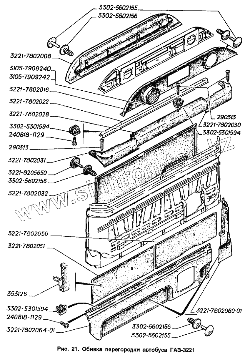 Каталог запасных частей к технике: ГАЗ-2705 (ГАЗель). Обивка перегородки автобуса ГАЗ-3221