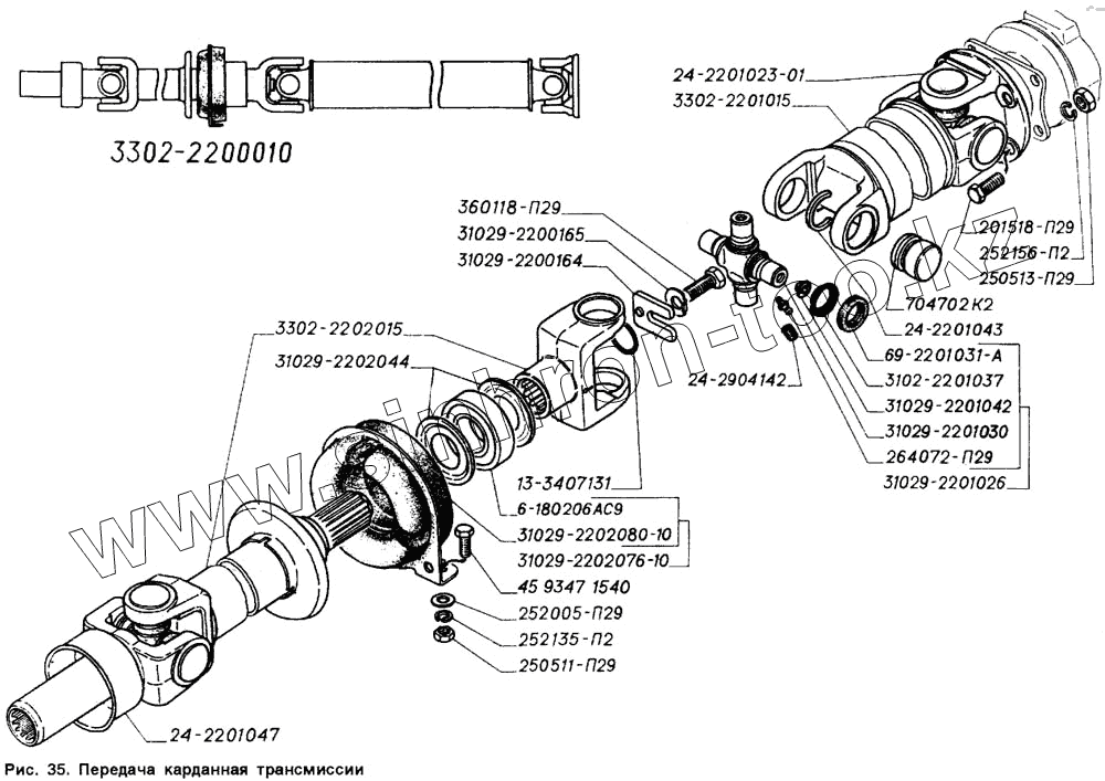 Каталог запасных частей к технике: ГАЗ-2705 (ГАЗель). Передача карданная трансмиссии