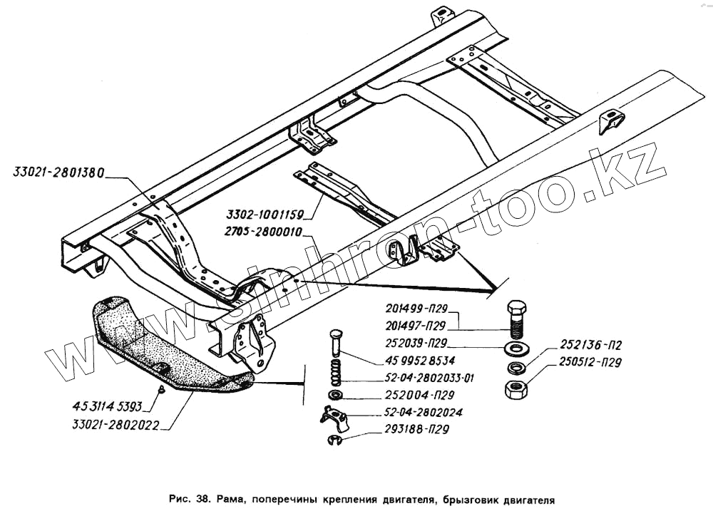 Каталог запасных частей к технике: ГАЗ-2705 (ГАЗель). Рама, поперечины крепления двигателя, брызговик двигателя