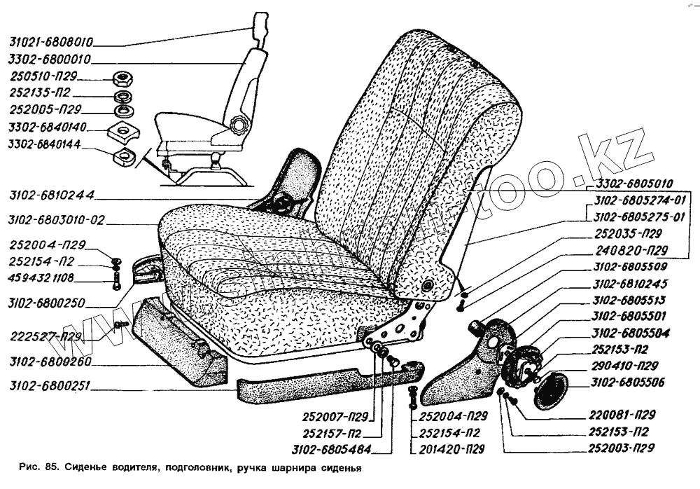 Каталог запасных частей к технике: ГАЗ-2705 (ГАЗель). Сиденье водителя, подголовник, ручка шарнира сиденья