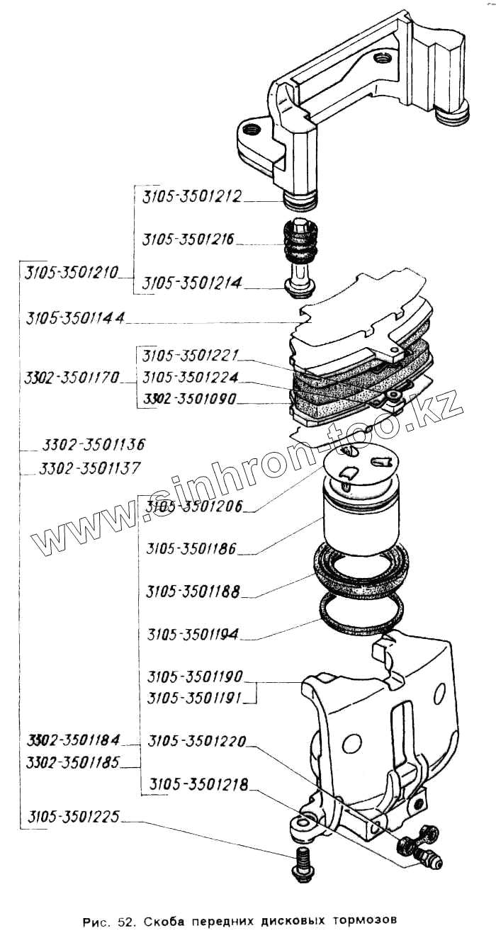 Каталог запасных частей к технике: ГАЗ-2705 (ГАЗель). Скоба передних дисковых тормозов