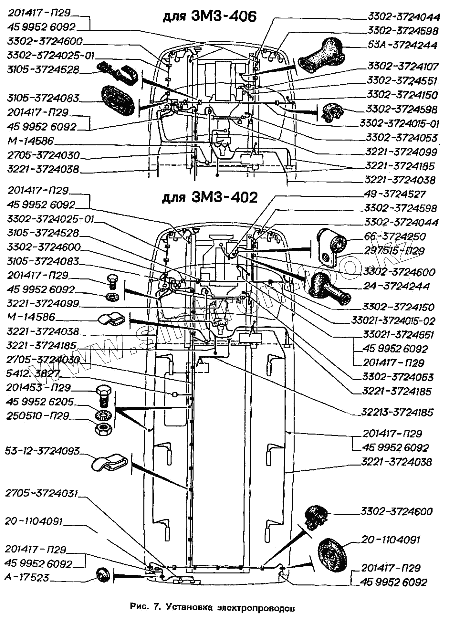 Каталог запасных частей к технике: ГАЗ-2705 (ГАЗель). Установка электропроводов