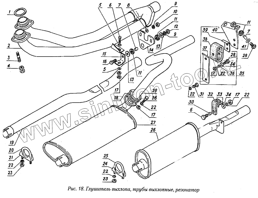 Каталог запасных частей к технике: ГАЗ-31029. Глушитель выхлопа, трубы выхлопные, резонатор