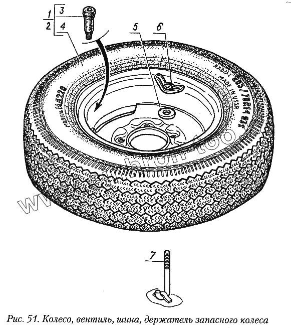 Каталог запасных частей к технике: ГАЗ-31029. Колесо, вентиль, шина, держатель запасного колеса