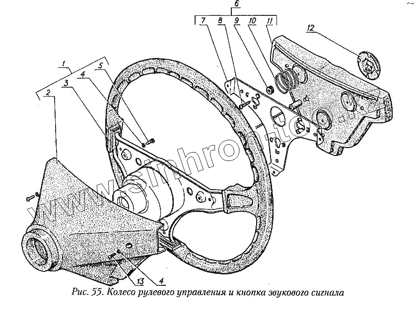 Каталог запасных частей к технике: ГАЗ-31029. Колесо рулевого управления и кнопка звукового сигнала