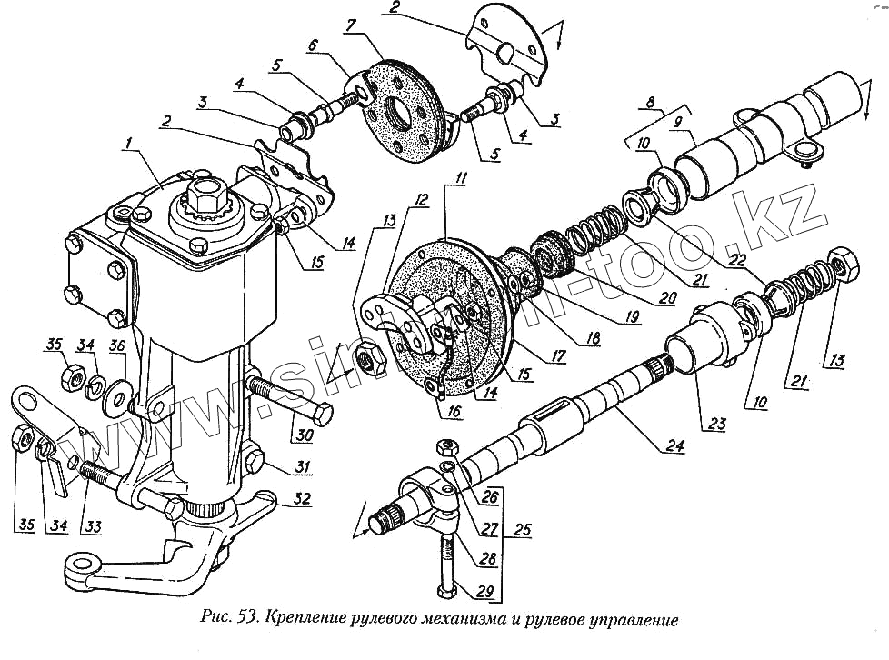 Каталог запасных частей к технике: ГАЗ-31029. Крепление рулевого механизма и рулевое управление