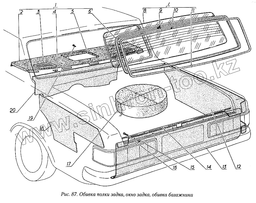 Каталог запасных частей к технике: ГАЗ-31029. Обивка полки задка, окно задка, обивка багажника
