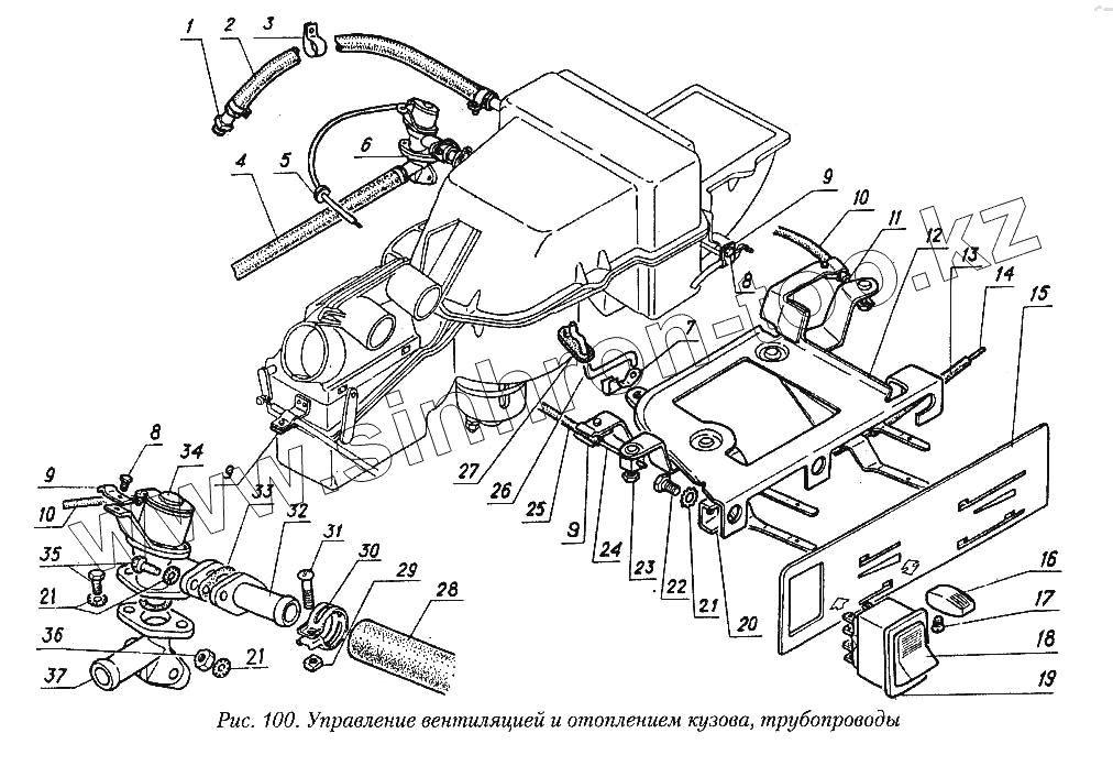 Каталог запасных частей к технике: ГАЗ-31029. Управление вентиляцией и отоплением кузова, трубопроводы