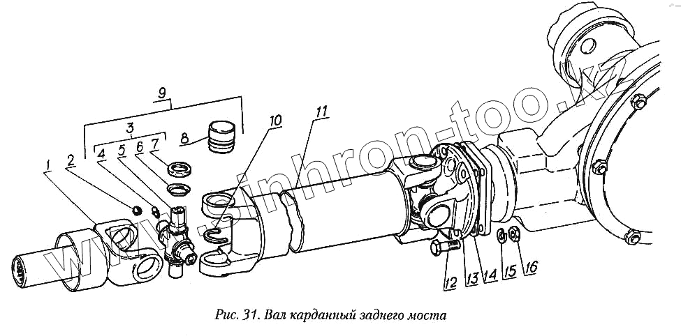 Каталог запасных частей к технике: ГАЗ-31029. Вал карданный заднего моста