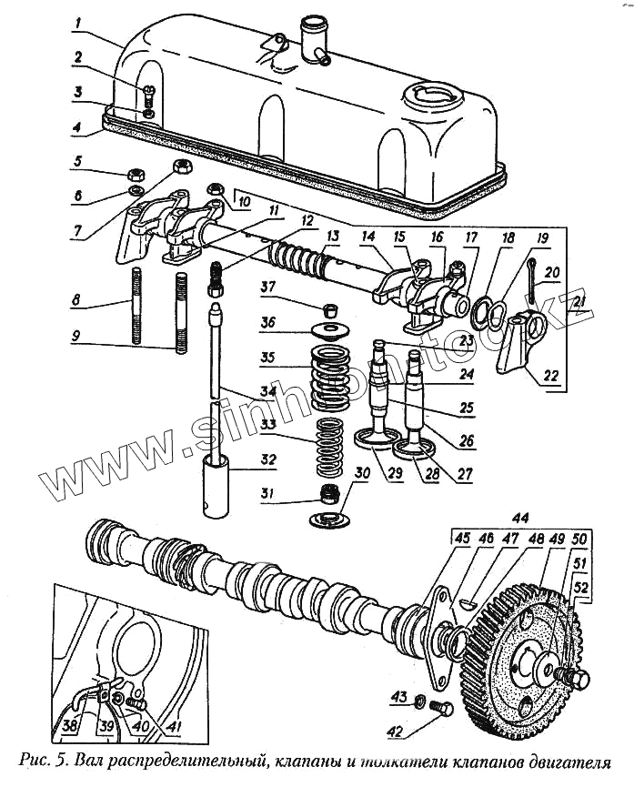 Каталог запасных частей к технике: ГАЗ-31029. Вал распределительный, клапаны и толкатели клапанов двигателя