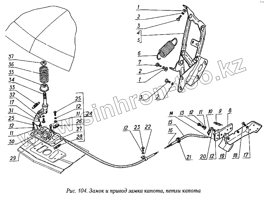 Каталог запасных частей к технике: ГАЗ-31029. Замок и привод замка капота, петли капота