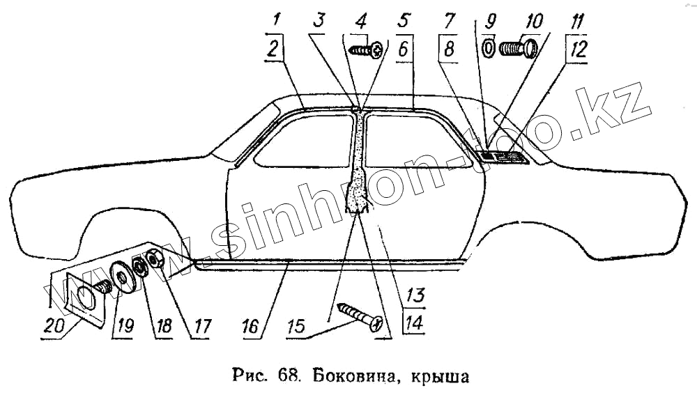 Каталог запасных частей к технике: ГАЗ-3102. Боковина, крыша