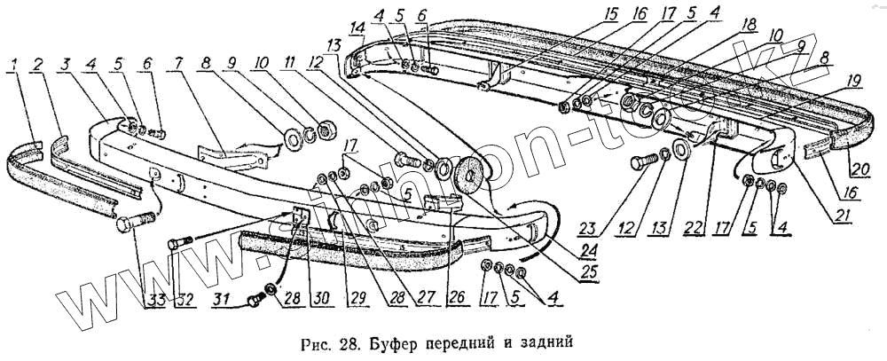 Каталог запасных частей к технике: ГАЗ-3102. Буфер передний и задний