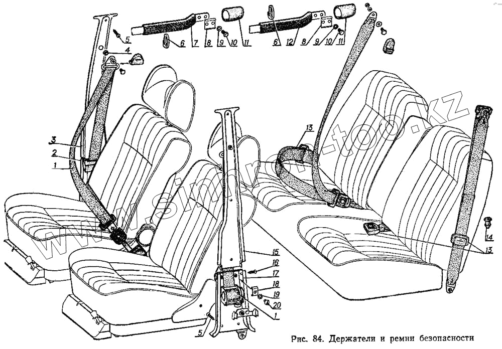 Каталог запасных частей к технике: ГАЗ-3102. Держатели и ремни безопасности