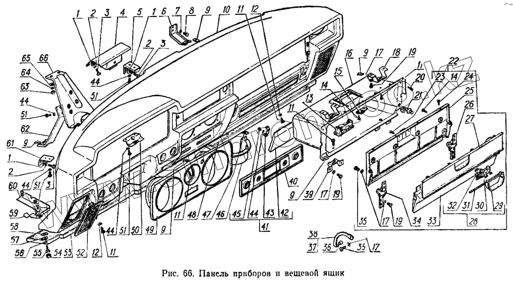 Каталог запасных частей к технике: ГАЗ-3102. Панель приборов и вещевой ящик