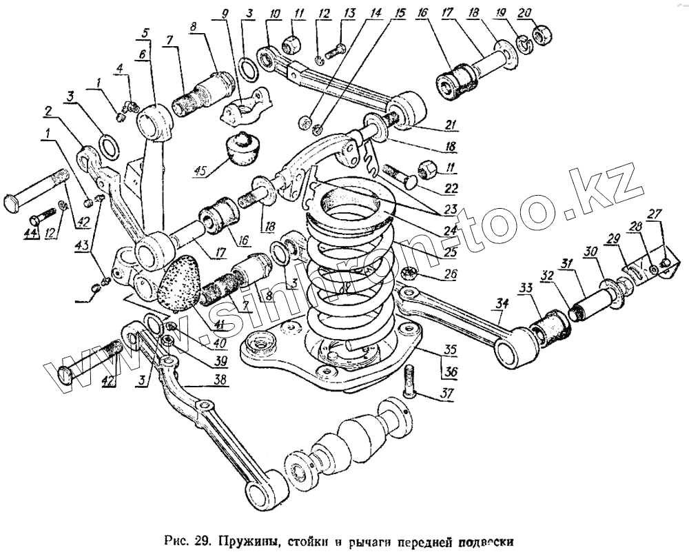 Каталог запасных частей к технике: ГАЗ-3102. Пружины, стойки и рычаги передней подвески