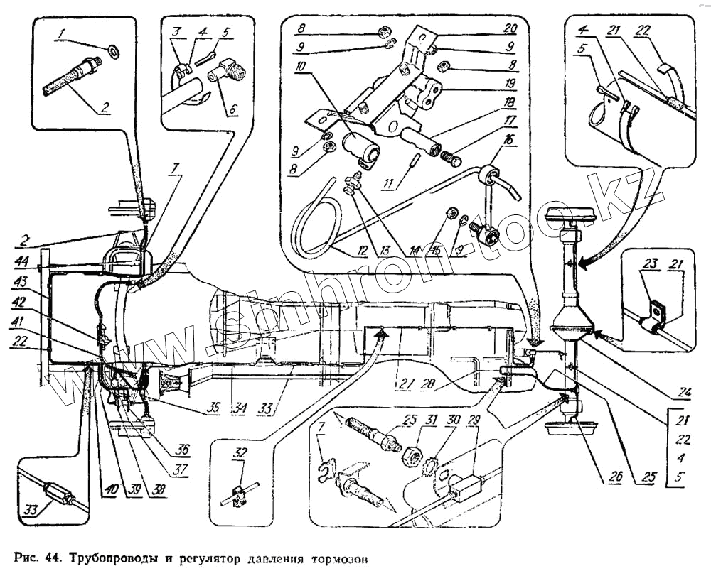 Каталог запасных частей к технике: ГАЗ-3102. Трубопроводы и регулятор давления тормозов