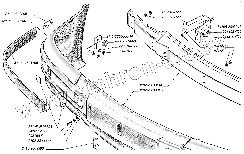 Каталог запасных частей к технике: ГАЗ-31105. Буфер передний
