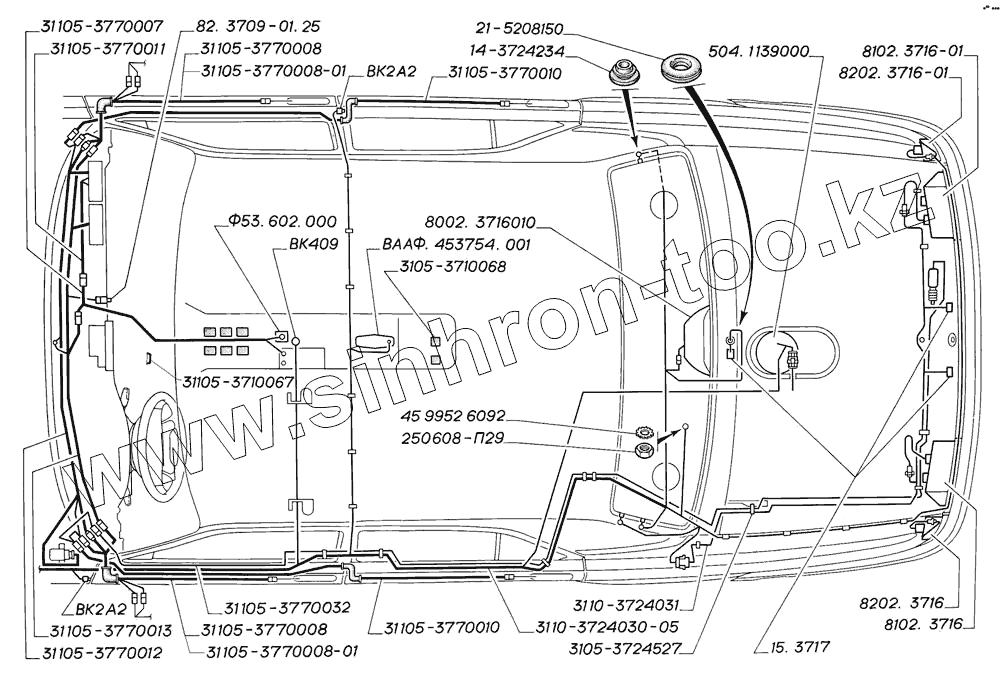 Каталог запасных частей к технике: ГАЗ-31105. Электропровода (салон и багажник)
