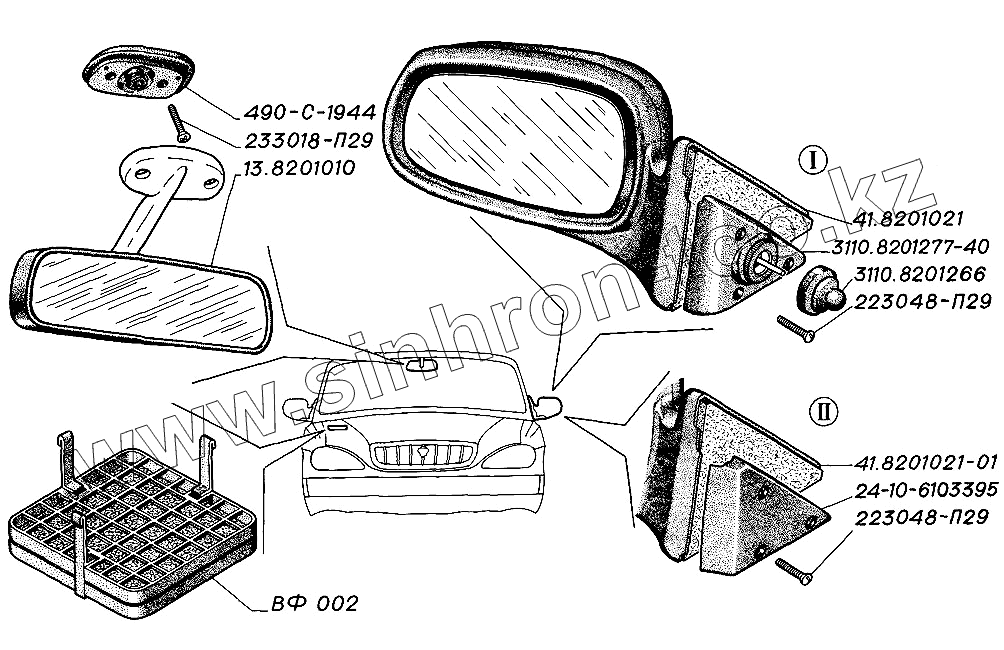 Каталог запасных частей к технике: ГАЗ-31105. Фильтр воздушный салона. Установка зеркал заднего вида