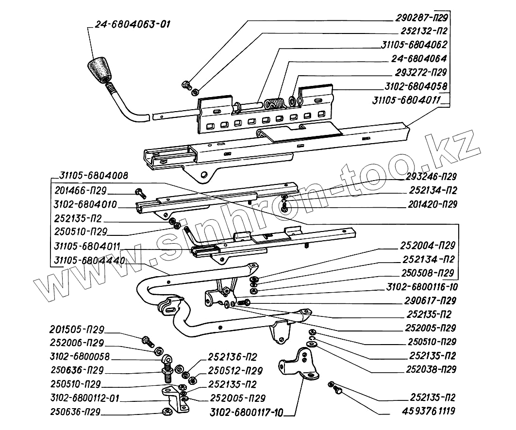 Каталог запасных частей к технике: ГАЗ-31105. Механизм регулирования передних сидений