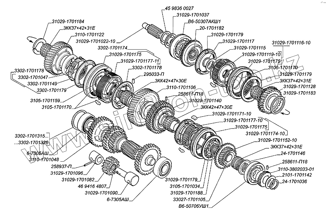 Каталог запасных частей к технике: ГАЗ-31105. Валы и шестерни коробки передач