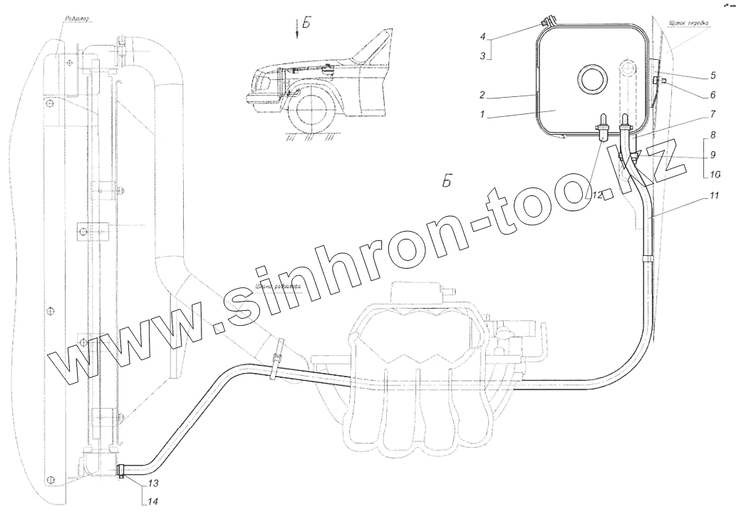 Каталог запасных частей к технике: ГАЗ-31105 (дополнение). Установка расширительного бачка