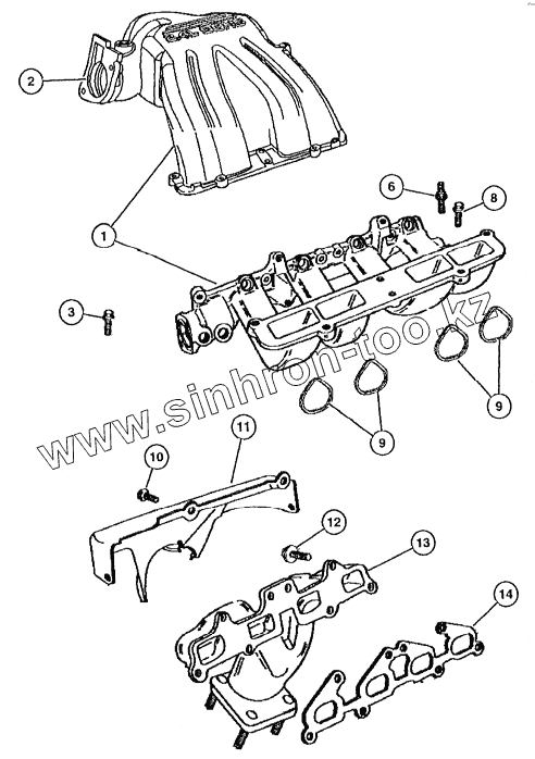 Каталог запасных частей к технике: ГАЗ-31105 (дополнение). Впускной и выпускной коллекторы