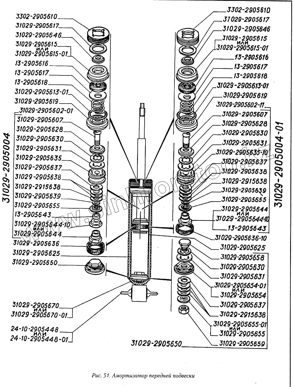 Каталог запасных частей к технике: ГАЗ-3110. Амортизатор передней подвески