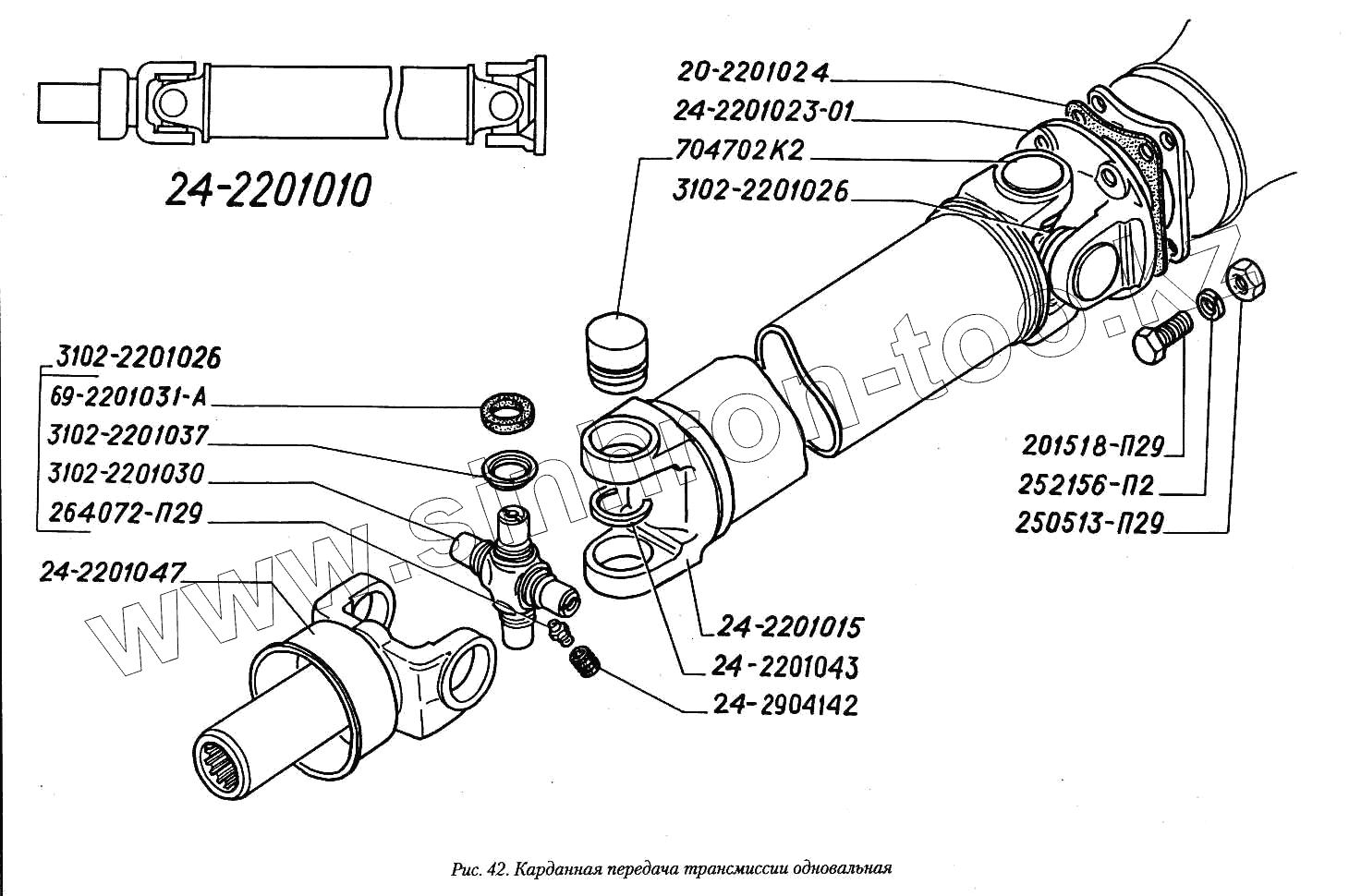 Каталог запасных частей к технике: ГАЗ-3110. Карданная передача трансмиссии одновальная