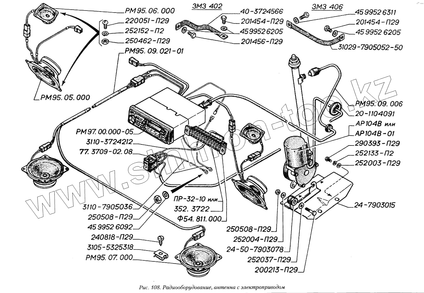 Каталог запасных частей к технике: ГАЗ-3110. Радиооборудование, антенна с электроприводом