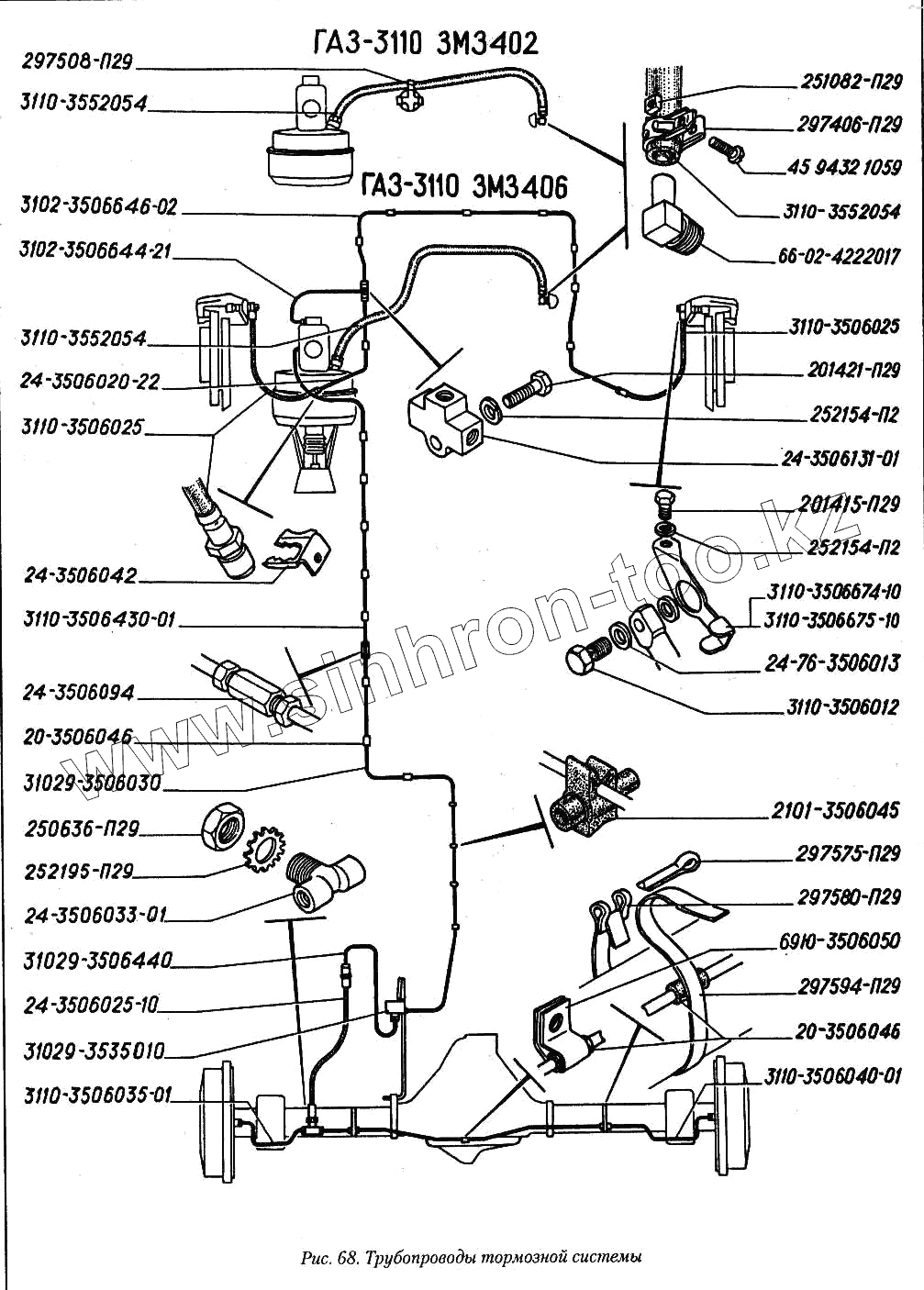 Каталог запасных частей к технике: ГАЗ-3110. Трубопроводы тормозной системы