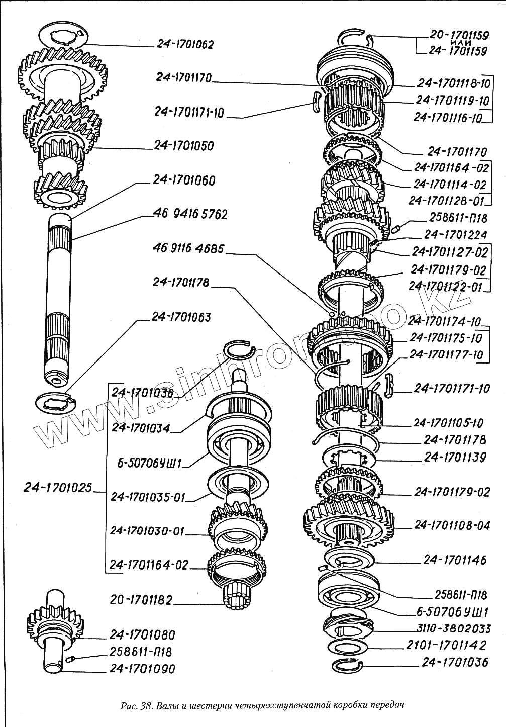 Каталог запасных частей к технике: ГАЗ-3110. Валы и шестерни четырехступенчатой коробки передач