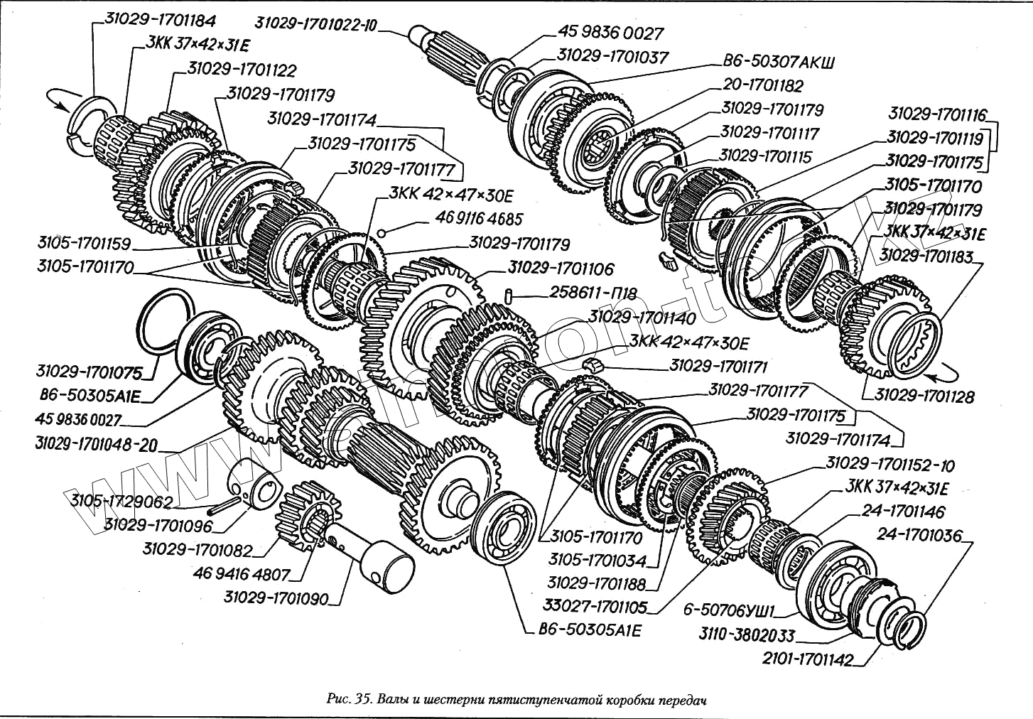 Каталог запасных частей к технике: ГАЗ-3110. Валы и шестерни пятиступенчатой коробки передач