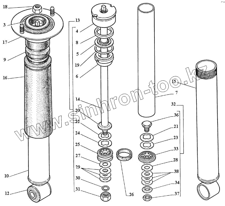 Каталог запасных частей к технике: ГАЗ-3111. Амортизатор задней подвески, буфер сжатия
