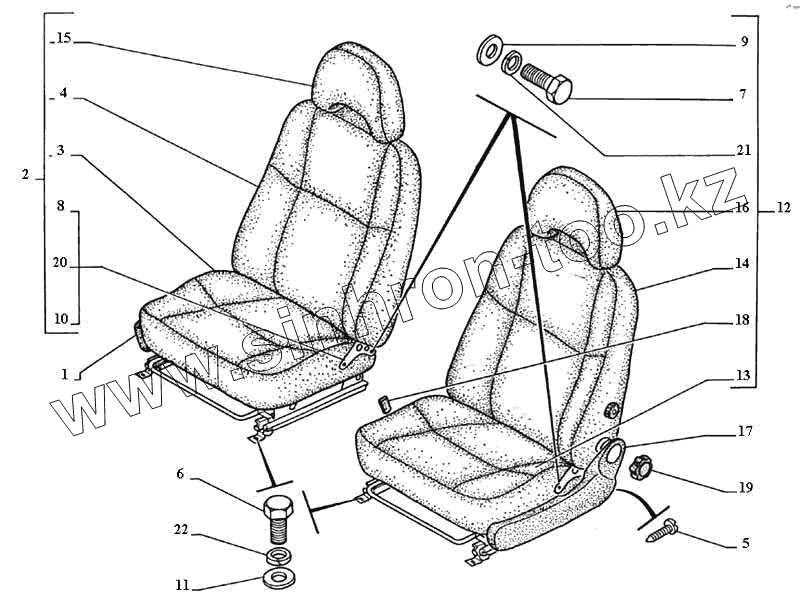 Каталог запасных частей к технике: ГАЗ-3111. Сиденье водителя и переднее сиденье