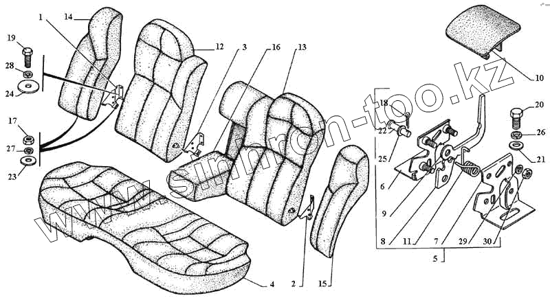 Каталог запасных частей к технике: ГАЗ-3111. Сиденье заднее