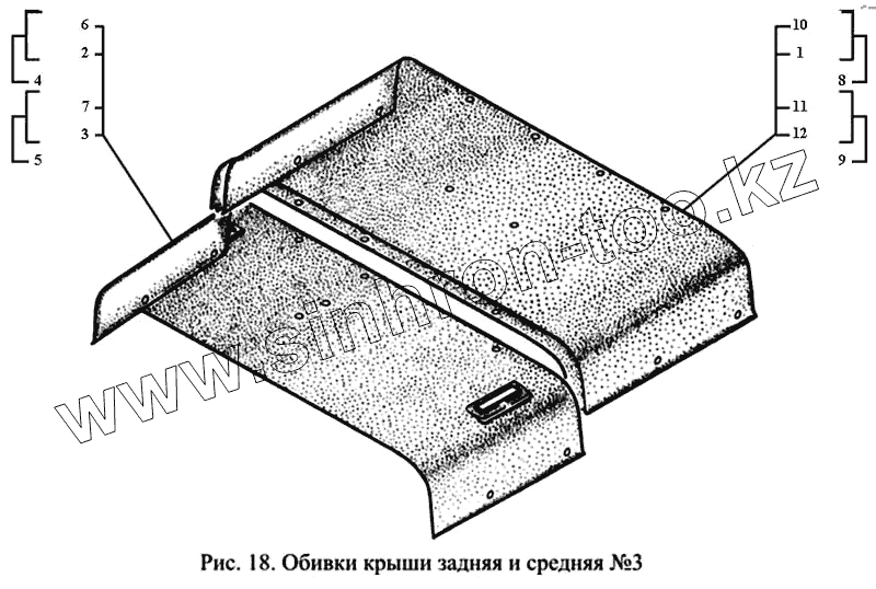 Каталог запасных частей к технике: ГАЗ-3221. Обивка крыши задняя и средняя №3