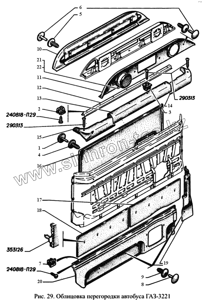 Каталог запасных частей к технике: ГАЗ-3221. Облицовка перегородки автобуса ГАЗ-3221