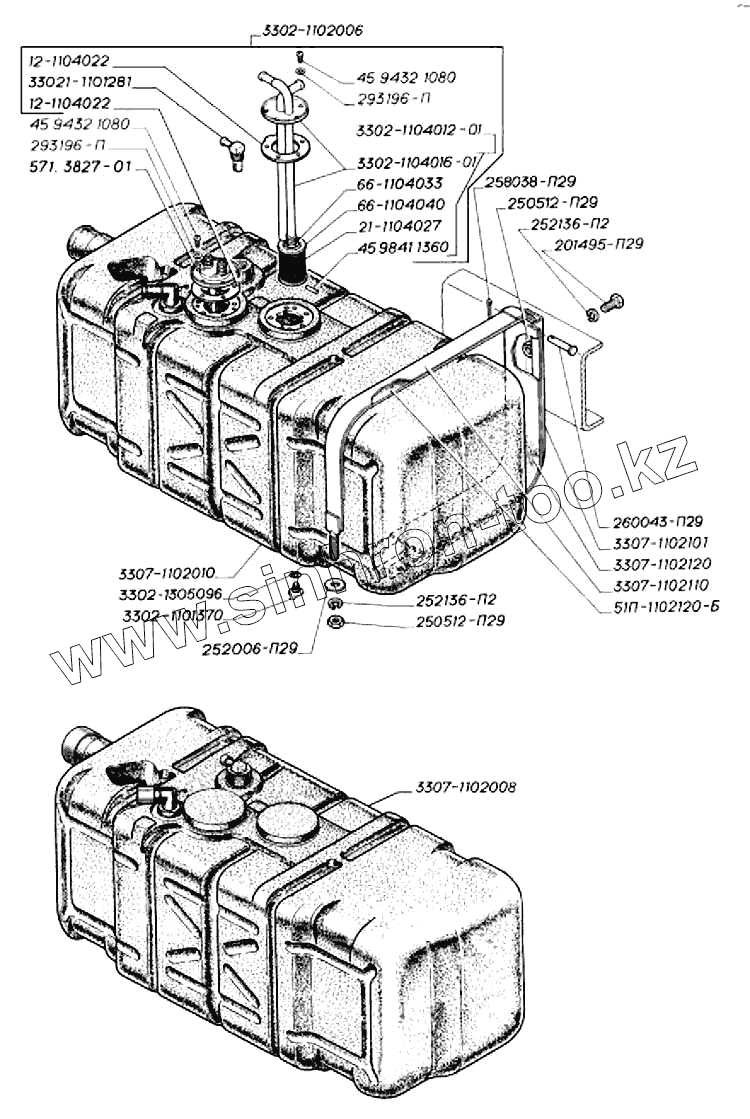 Каталог запасных частей к технике: ГАЗ-3302 (2004). Бак топливный пластмассовый