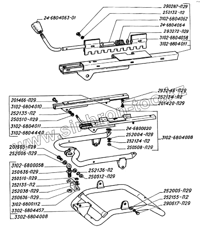 Каталог запасных частей к технике: ГАЗ-3302 (2004). Механизм регулирования сиденья водителя
