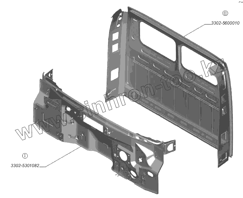 Каталог запасных частей к технике: ГАЗ-3302 (2004). Щиток передка. Панель задка