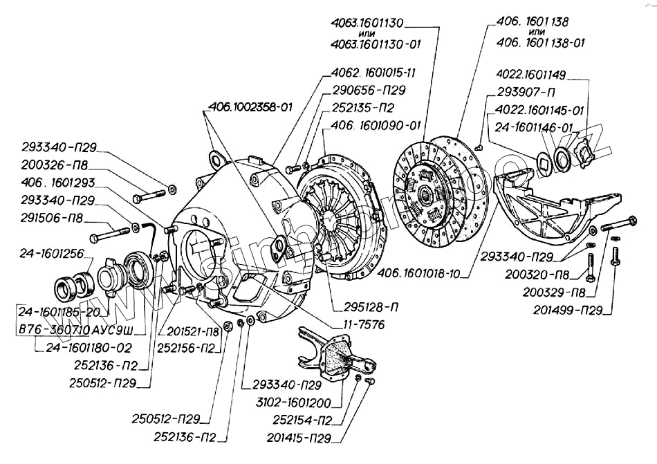 Каталог запасных частей к технике: ГАЗ-3302 (2004). Сцепление двигателей ЗМЗ-406