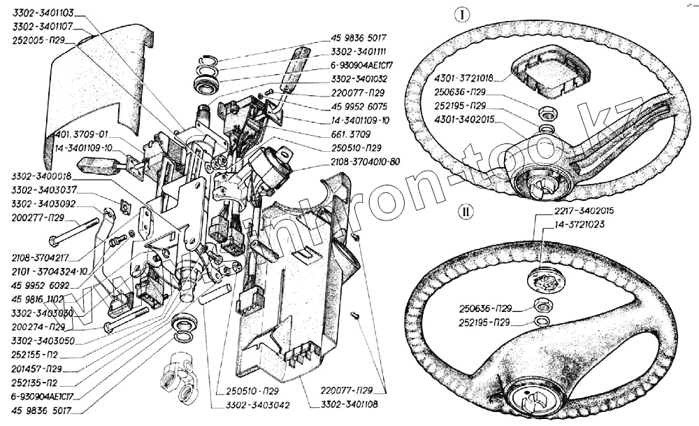 Каталог запасных частей к технике: ГАЗ-3302 (2004). Управление рулевое, выключатель зажигания
